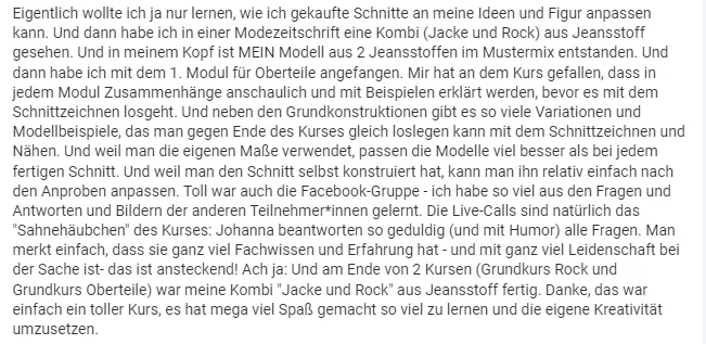 Für Hobby-Schneiderinnen ist es nahezu unmöglich, eine fundierte Ausbildung in der Schnittkonstruktion zu absolvieren. Deshalb habe ich es zu meiner Mission gemacht, meine Leidenschaft zum Schnittzeichnen mit möglichst vielen im Hobby-Schneiderinnen zu teile und mein Wissen in Onlinekursen weiterzugeben.