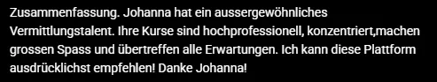 In diesem Fall ist eine Einzelbetreuung notwendig, die ich weder online noch offline anbiete.