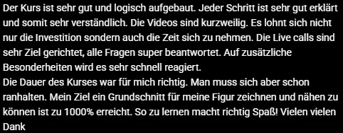 Auch wenn in dem Kurs die häufigsten Figur- und Schnittanpassungen berücksichtigt werden, kann es vorkommen, dass du für eine perfekt sitzende Maßschnitt noch weitere / andere individuelle Anpassungen benötigst. Das sind dann die inhaltlichen Grenzen des Selbstlernkurses und der VIP-Betreuung. Der Kurs bietet keine Anpassungen für adipöse Personen, asymmetrische Körperhälften, Rollstuhlfahrer, verkrümmte Wirbelsäule, Lipödeme, etc. an.