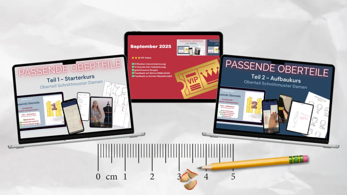Kursteil 1 und 2 vermitteln dir das nötige theoretische Fachwissen, um grundsätzlich Maßschnitte zu erstellen.